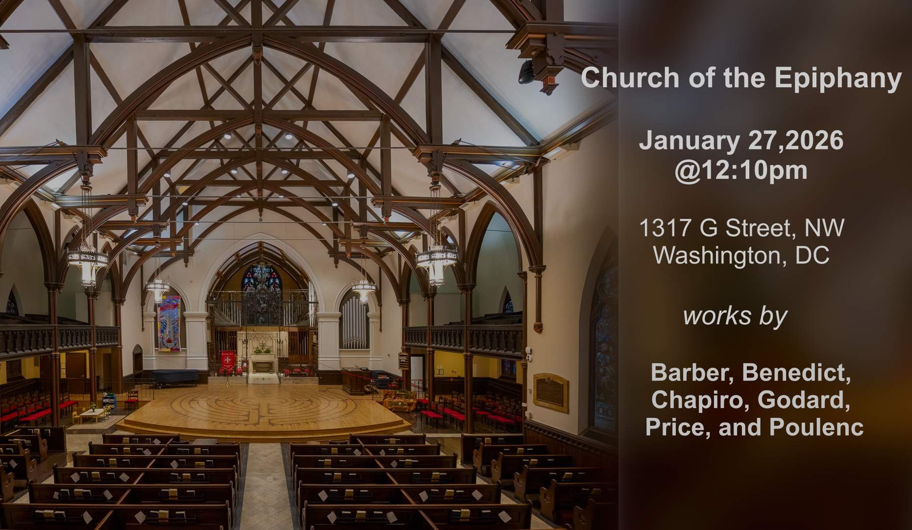 Our indoor concert is free and open to the public! No tickets or timed entry required.